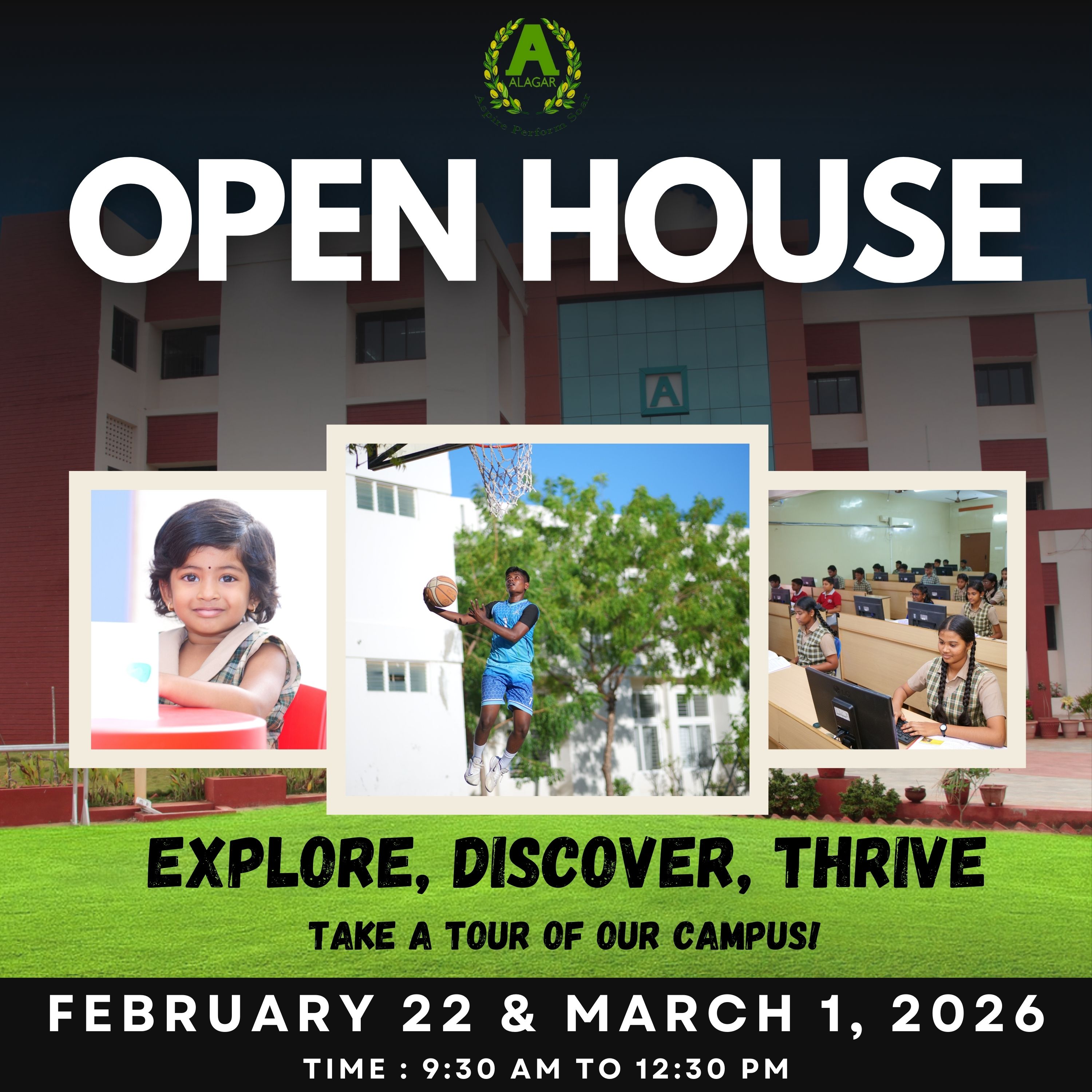 How does a school make difference? All the usual answers leap to mind, but what Alagar does most of all is that it exudes a positive energy which stays the whole day through. The core identity of Alagar has always been the ‘Student’. We believe in the dictum. “If you cannot learn the way you teach, can you teach the way I learn?”. All our school activities are geared towards making ‘learning’ a joyful process. Alagar’s 6 acres campus boasts of a unique architectural design. It is designed to give students maximum space. There are open corridors throughout the school that provide vistas of light and shade. All our spacious classrooms have ample light.